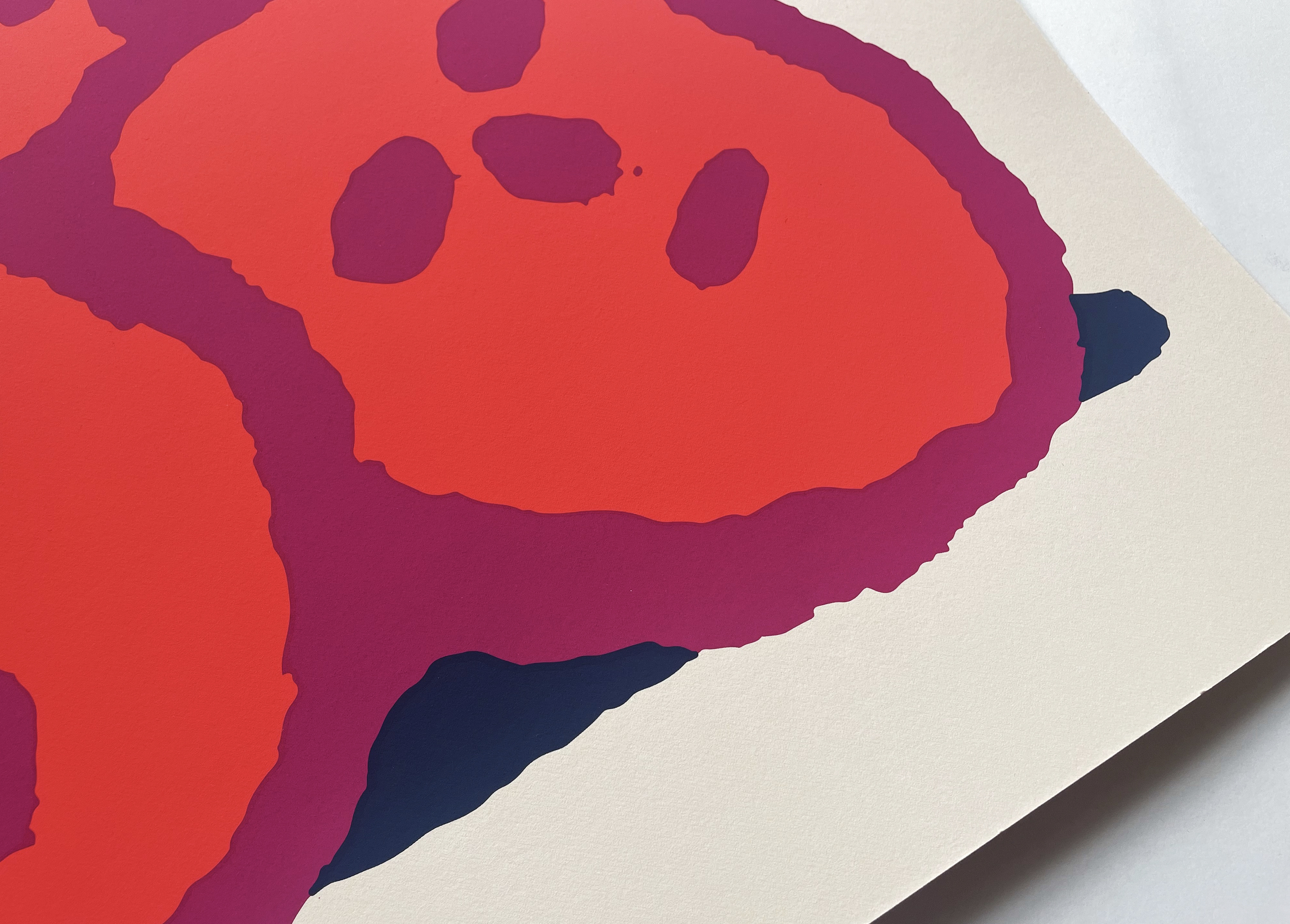 Hand pulled screen print, each print may vary a little in color and in the texture of the paint